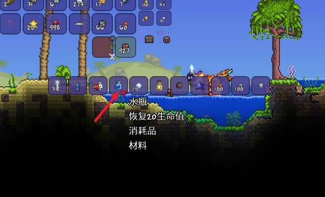 4、找到有水的地方(河流或水槽),徒手打開製作界面。