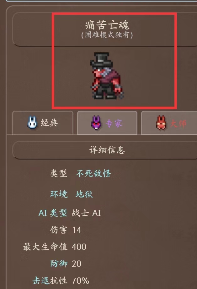 首頁 泰拉瑞亞 問答 泰拉瑞亞痛苦亡魂長什麼樣子? 2022-11-12 痛苦亡魂介紹如下:在遊戲《泰拉瑞亞》中,痛苦亡魂是一種稀有的敵怪,生成於困難模式的地獄。當玩家向他拋出凈化粉時,他就會變成稅收官,並且它同時最多隻能生成一個。