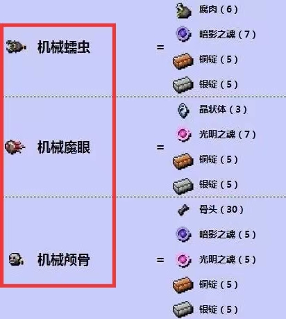 首頁 泰拉瑞亞 問答 泰拉瑞亞機械三王怎麼自然生成? 2022-11-12 機械三王不能自然生成,介紹如下:在遊戲《泰拉瑞亞》中,機械三王不能自然生成,玩家只有機械三王的召喚物才能召喚,召喚物分別是:機械顱骨、機械蠕蟲、機械魔眼。