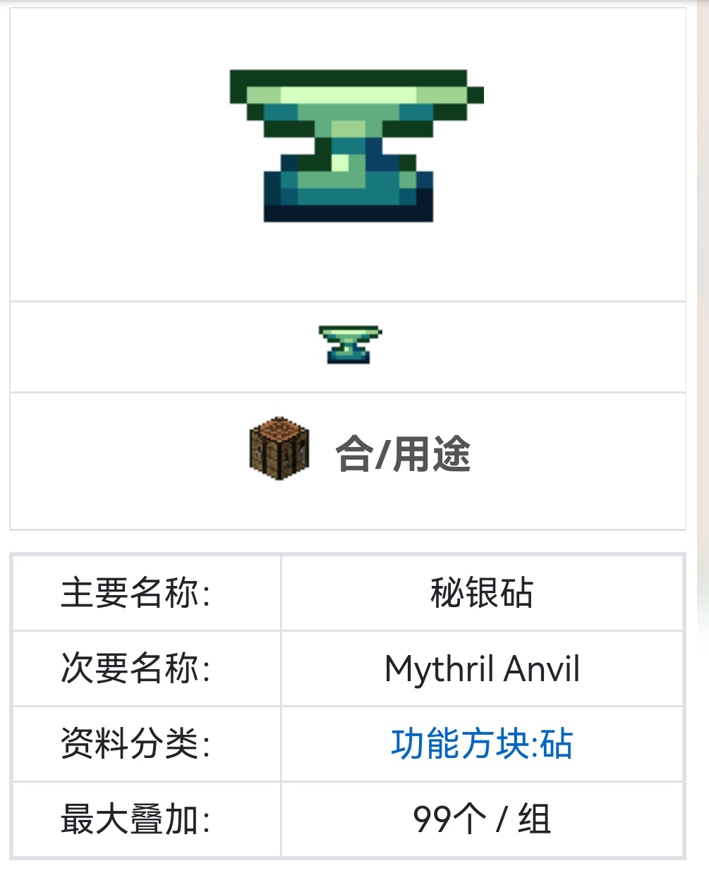 首頁 泰拉瑞亞 問答 泰拉瑞亞mythril anvil是什麼意思? 2022-11-13 Mythril Anvil 指泰拉瑞亞遊戲中的秘銀砧,如下圖所示,這個英文名是它的次要名稱,最大疊加是99個每組,玩家記住其英文名後就不會在遊戲中搞錯這個物品了。