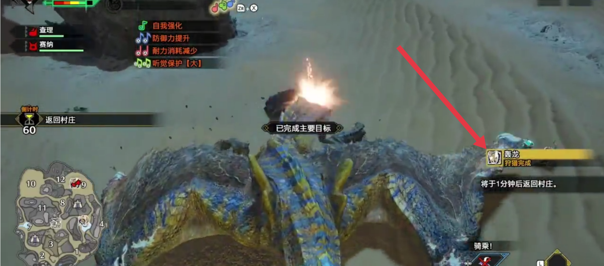 4、在地圖中找到轟龍位置,將其擊敗,如下圖所示: