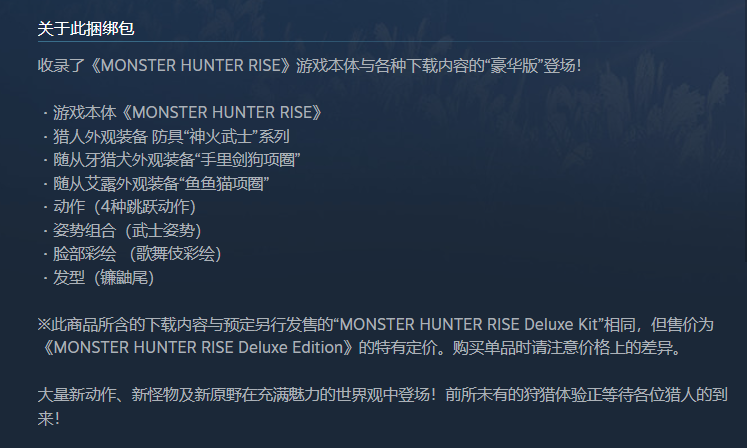 首頁 怪物獵人:崛起 問答 怪物獵人崛起標準版和豪華版有什麼區別? 2022-11-14 怪物獵人崛起豪華版比標準版多了外觀,姿勢,彩繪等物品詳細內容如下:怪物獵人崛起遊戲的steam商店界面顯示,遊戲的豪華版比標準版多了外觀,姿勢,彩繪等物品。