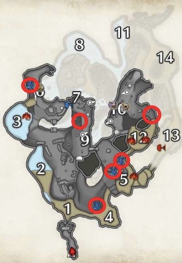 輝龍石是在熔岩洞這個地圖的,在熔岩洞里,可以從藍脈和白脈獲得輝龍石。主要採集分布圖如下。1.熔岩洞上層: