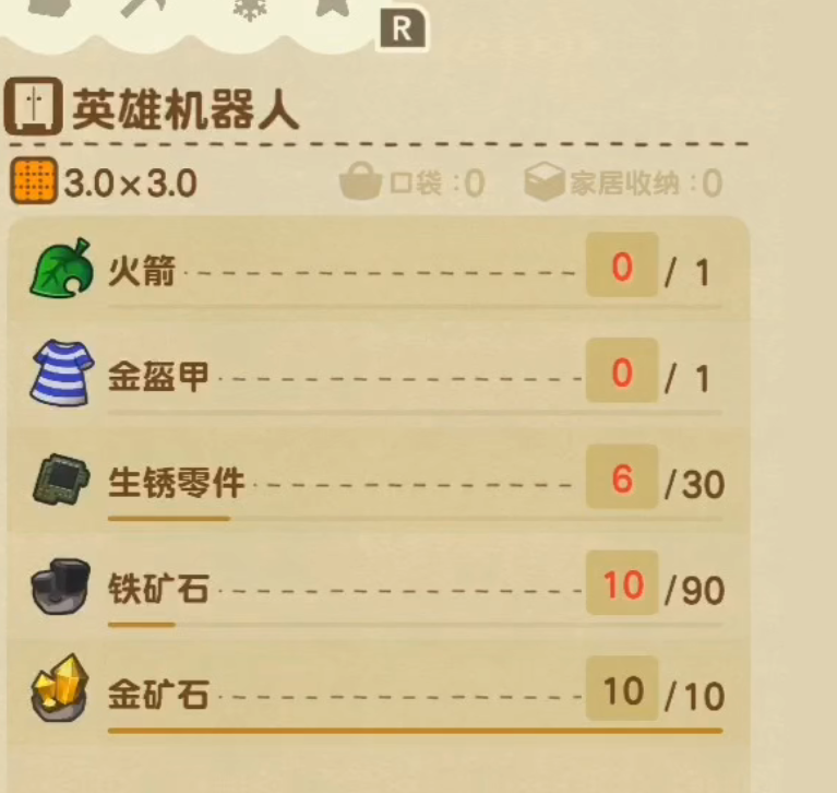 首頁 集合啦!動物森友會 問答 動森生鏽零件可以做什麼? 2022-11-17 1、我們從服務處的回收箱里,可以獲得生鏽零件。2、只有在一個diy手冊里,我們需要用到這個生鏽零件。那就是英雄機器人diy手冊,需要用上30塊生鏽零件。以上就是生鏽零件的唯一用途。