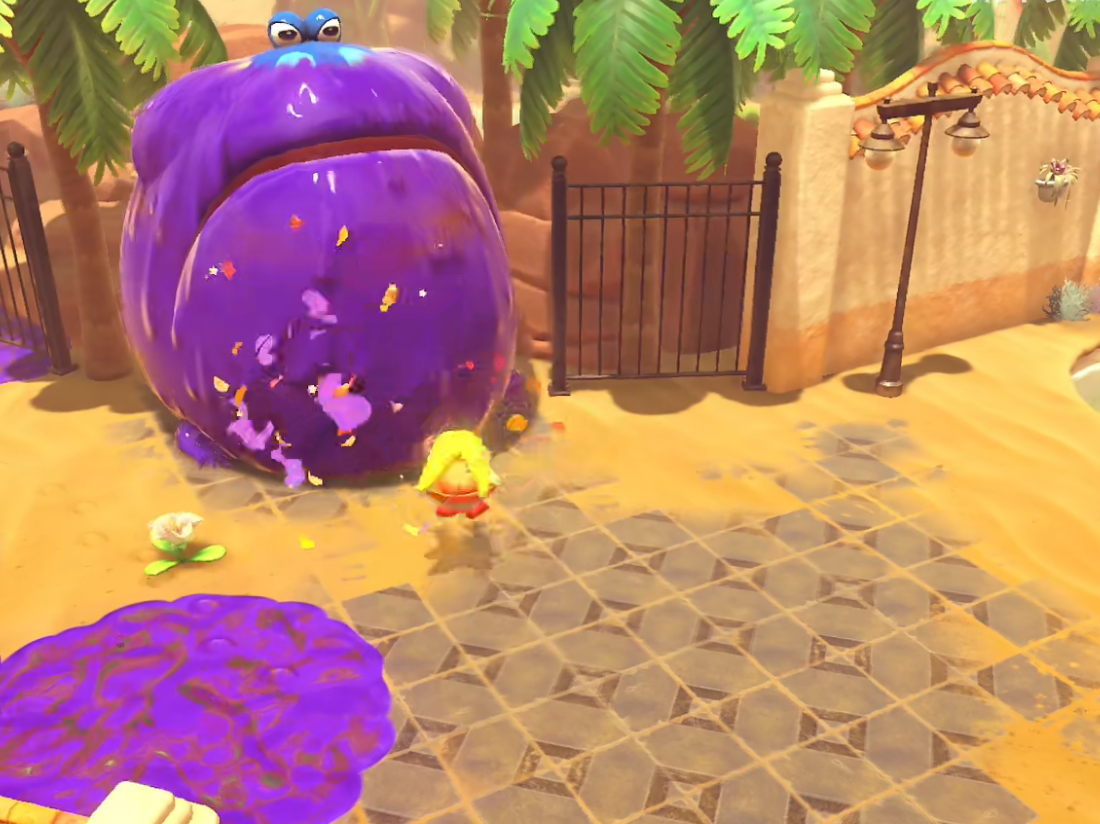 紫色怪物是毒毒蛙,出現在原始荒野大地裡面的關卡,其身形巨大,攻擊方式是會噴出一口紫色腐蝕液體對主角卡比造成傷害。