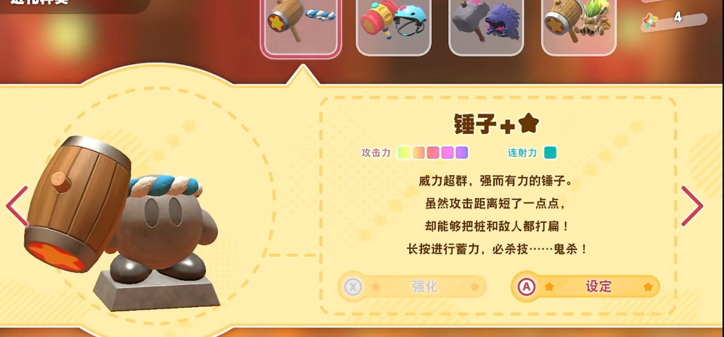 2、二周目可以強化卡比的能力,在瓦豆魯迪武器店中強化,需要準備好材料與金幣。