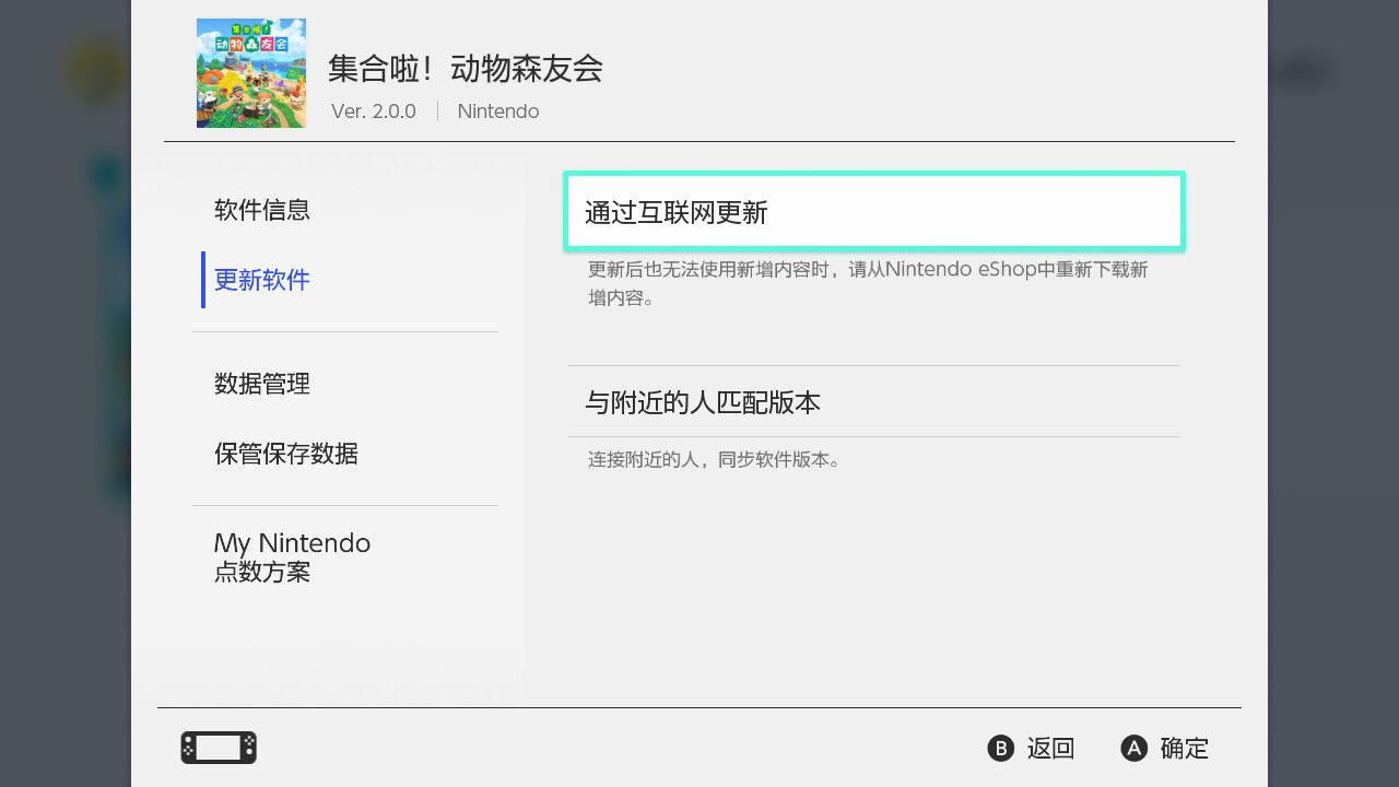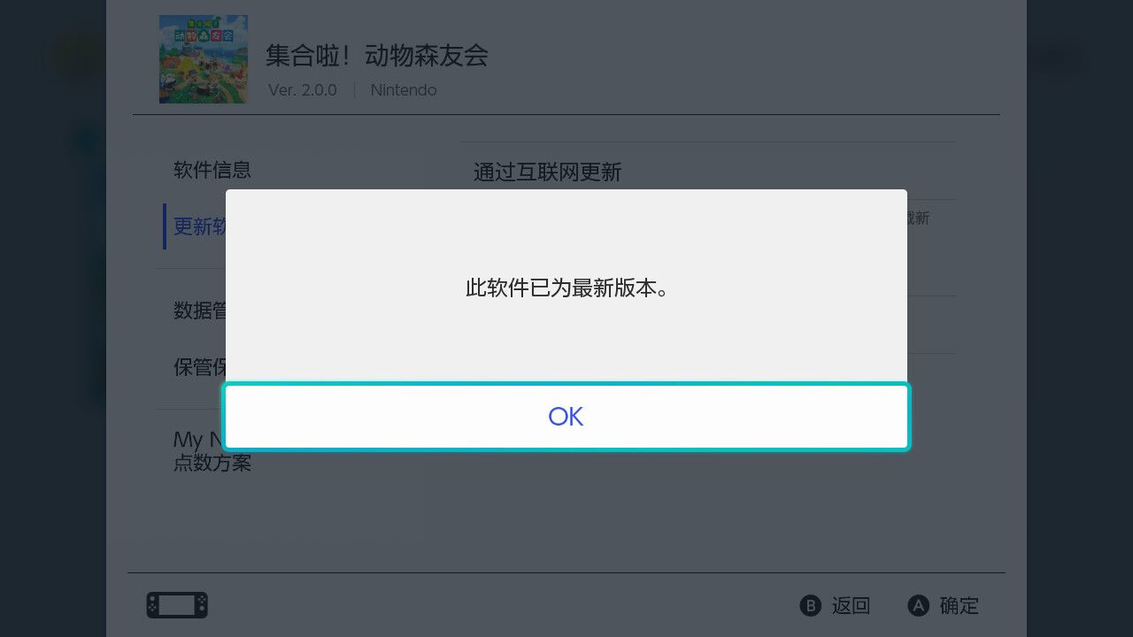 首頁 集合啦!動物森友會 問答 動森怎麼更新? 2022-11-20 1.打開switch找到動森按右邊手柄的 號可以看見更新軟體的地方,確定聯網通暢點擊通過互聯網更新2.如果是最新版本會提示此軟體為最新版本,有可更新內容直接更新就可以啦