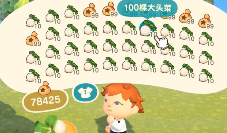 首頁 集合啦!動物森友會 問答 動森大頭菜怎麼得到? 2022-11-20 1、在地圖中找到販賣大頭菜的NPC。2、接著與NPC對話。3、選擇購買。4、選擇購買數量,點擊確定。5、打開背包就可以看到自己購買的大頭菜了。