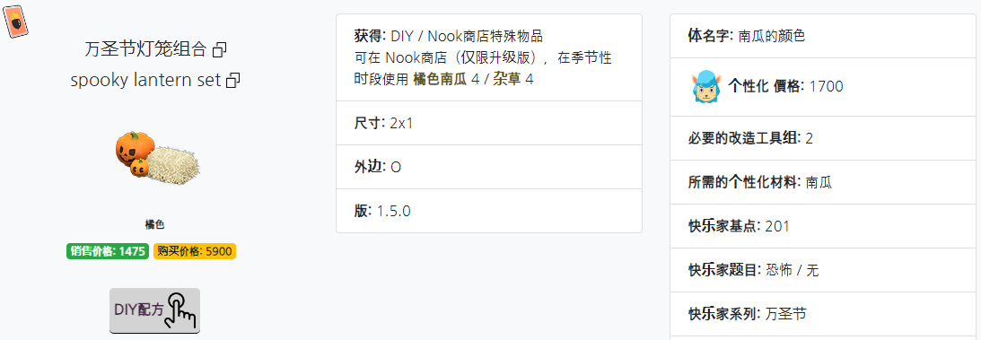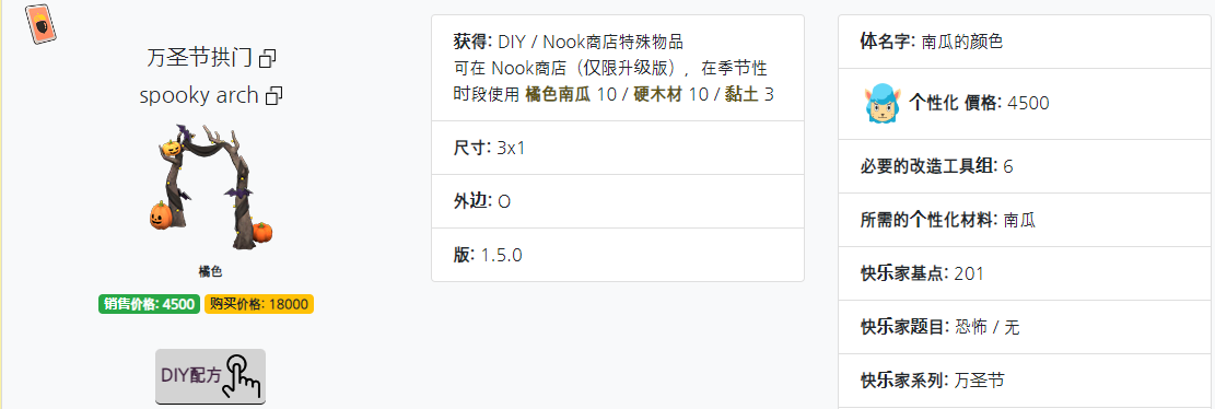 動森在2021年11月5日更新2.0版本後,萬聖節diy由14個增加到了18個,其中萬聖節搗蛋燈,萬聖節樹,萬聖節點心籃是2021年2.0版本之前的更新(萬聖節前),萬聖節餅干是2.0版本的更新(萬聖節後)。這18個萬聖節diy是: