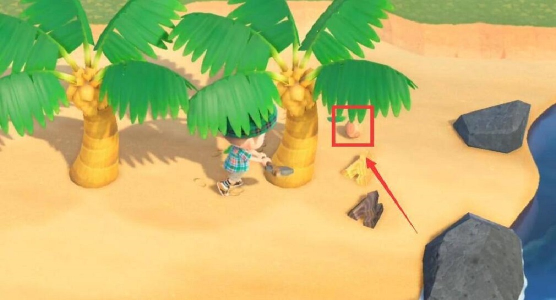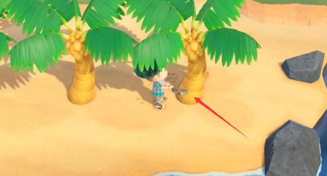 1.在游戲的復活節活動中,我們拿著斧子走到椰子樹的旁邊。