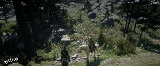 9、於是需要跟隨哈米什把馬起到剛才看到它的地方。在那裡能看到一頭鹿的屍體,調查屍體後,狼會再次在山腳下的樹林里出現。之後狼會跑到樹林里去,所以此時需要按開啟鷹眼來查看狼的足跡。