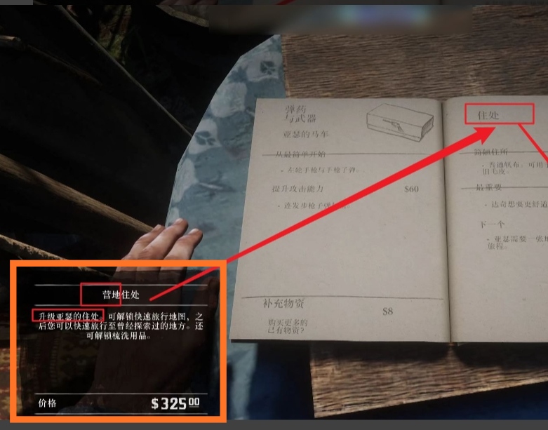 單機游戲荒野大鏢客2中,玩家升級營地後會解鎖快速旅行地圖,這樣玩家就可以快速到達曾經探索過的地方,並且還會解鎖洗漱用品。