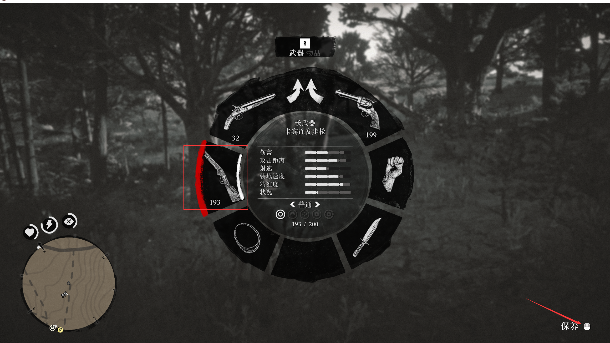荒野大鏢客2是一款發售於2018年10月26日的游戲,而在游戲內,玩家需要偶爾對自己的槍械進行保養,玩家除了去武器店保養外,也可以按住tab鍵,然後選擇自己想要保養的槍點擊滑鼠中鍵即可,需要注意的是,玩家自己保養需要槍油,而槍油可以在商店購買。