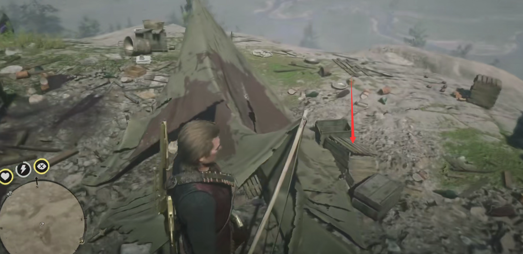 2、在標記點位找到一個帳篷,在帳篷旁邊的木板下方可以找到一個箱子,打開即可獲得配方。