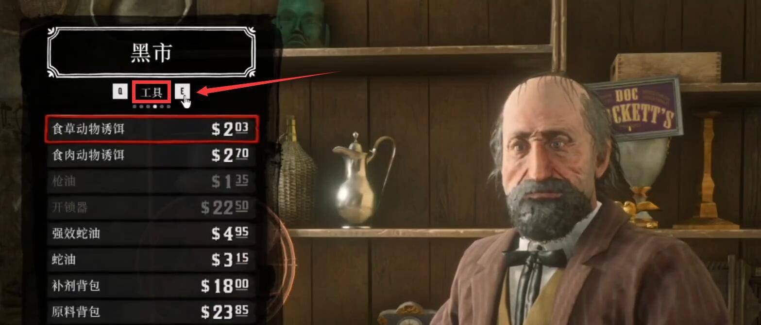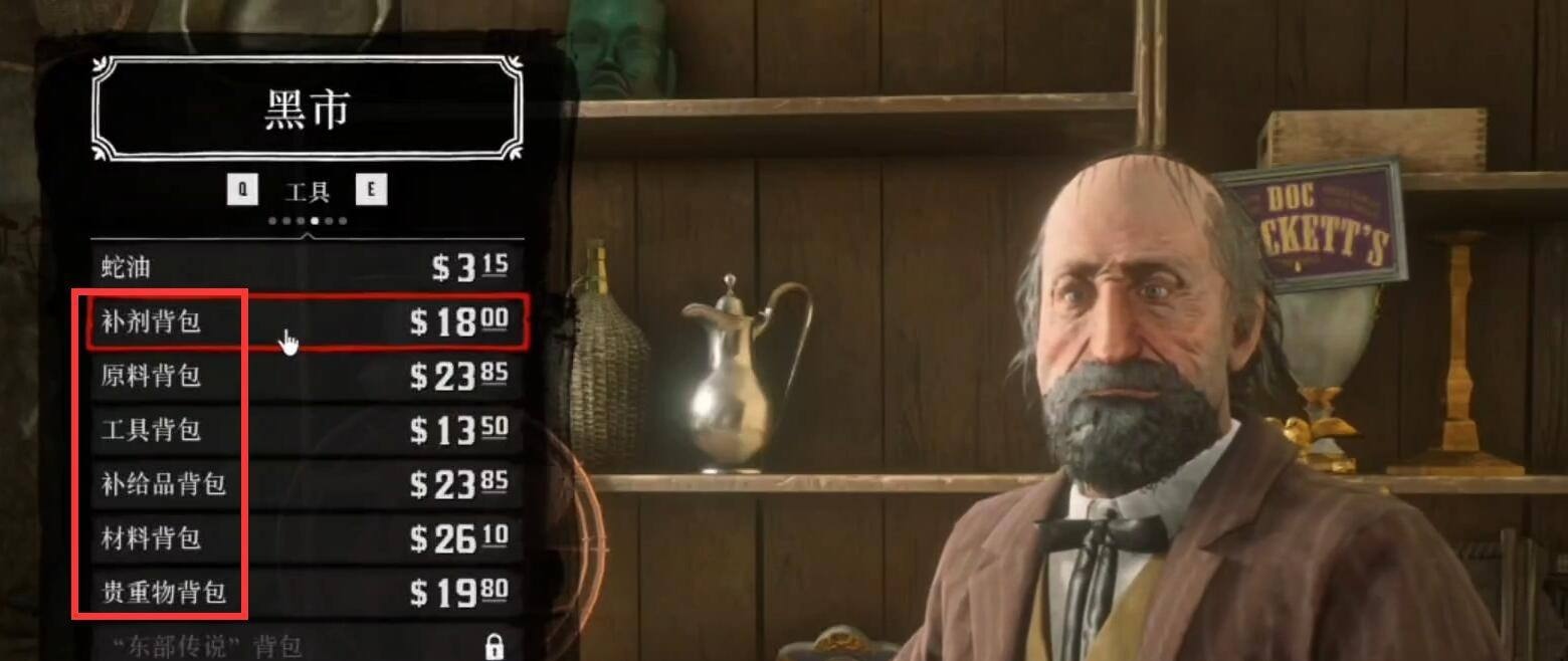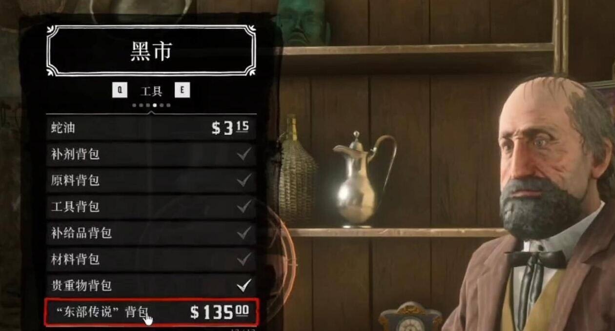 首頁 荒野大鏢客2 問答 荒野大鏢客2東部傳說背包在哪裡買? 2022-11-24 1、玩家打開地圖,來到聖丹尼城,前往圖中標記的黑市中,走到店主前方,按下E鍵,按下E鍵,將分類切換到工具;2、買下圖中標記的背包,選中東部傳說背包,按下回車,即可購買,如下圖所示;