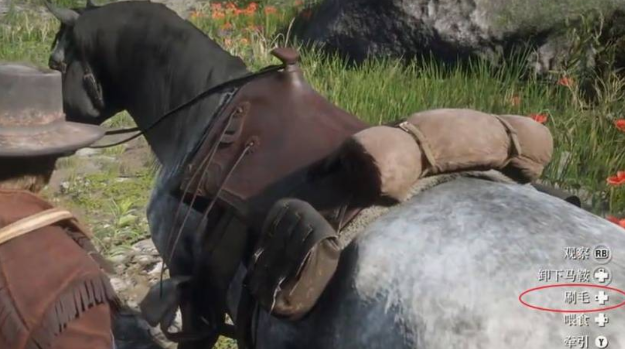 荒野大鏢客2給馬刷毛的方法如下;