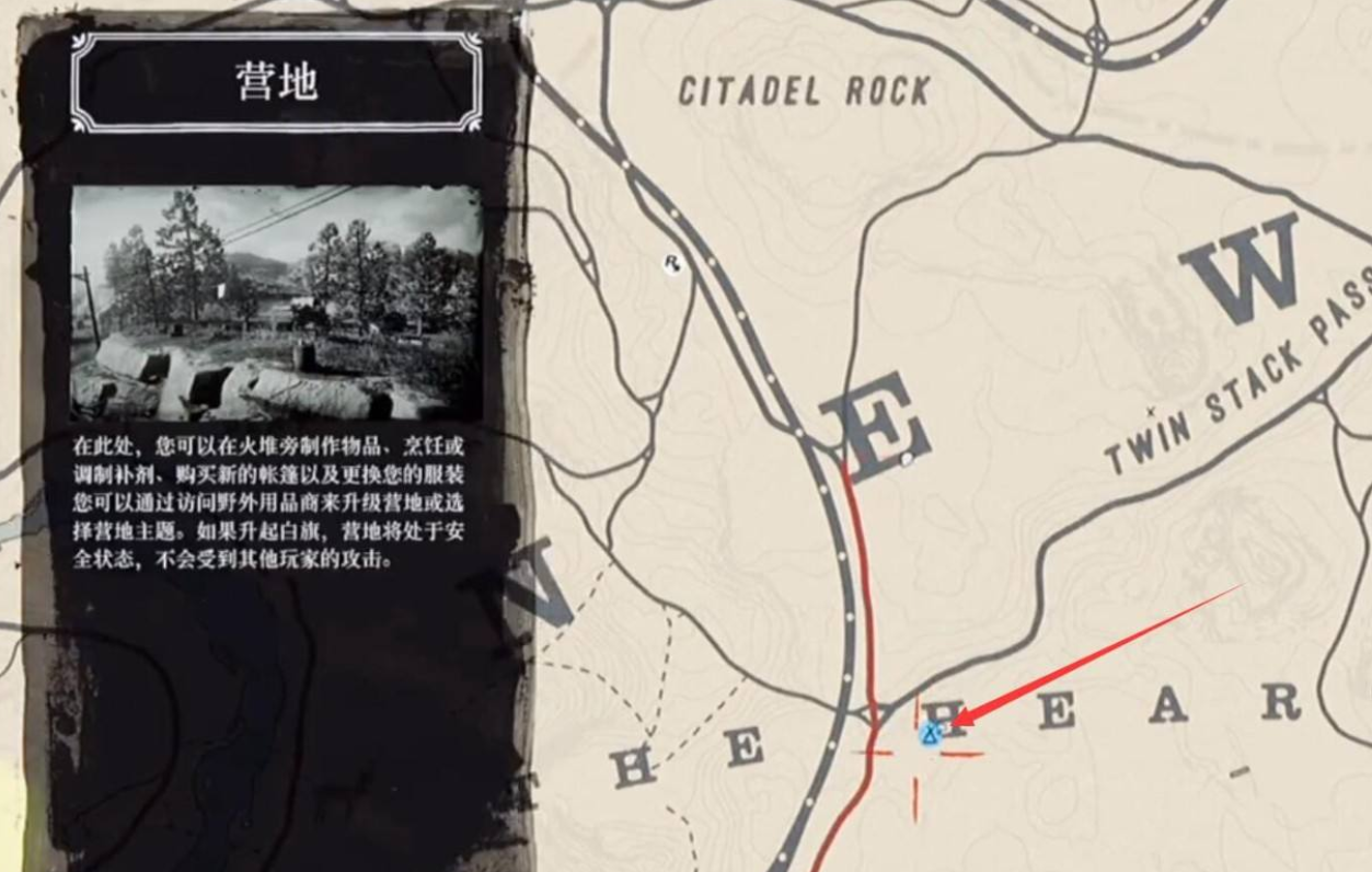 在游戲中玩家首先在地圖上找到營地的位置,然後選擇回去的方式,選擇騎馬,最後騎上馬之後快速的往營地趕即可快速的回到營地.