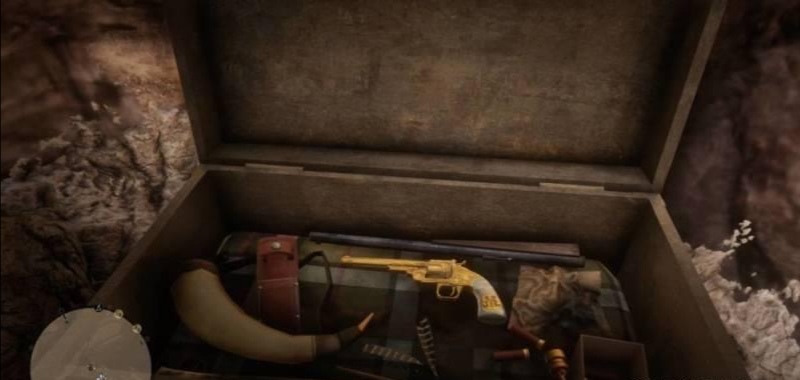 首頁 荒野大鏢客2 問答 荒野大鏢客2林賽沃福德金色槍位置在哪? 2022-11-26 1、林賽沃福德金色槍位置在地圖西南房犰狳鎮左上角邊緣,地圖位置如下圖所示:2、到達地圖所在位置後,可以找到一個裝有黃金左輪的箱子,如下圖所示:3、在箱子裡面即可找到林賽沃福德金色槍,如下圖所示: