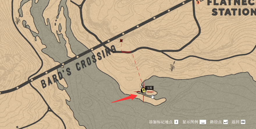 首頁 荒野大鏢客2 問答 荒野大鏢客2線上巴德橫渡大橋寶藏位置在哪? 2022-11-26 1、在荒野大鏢客2中,線上的巴德橫渡大橋寶藏的具體位置如地圖上箭頭所指。2、當玩家來到這里之後,在河灘靠石頭這里就可以找到寶藏。