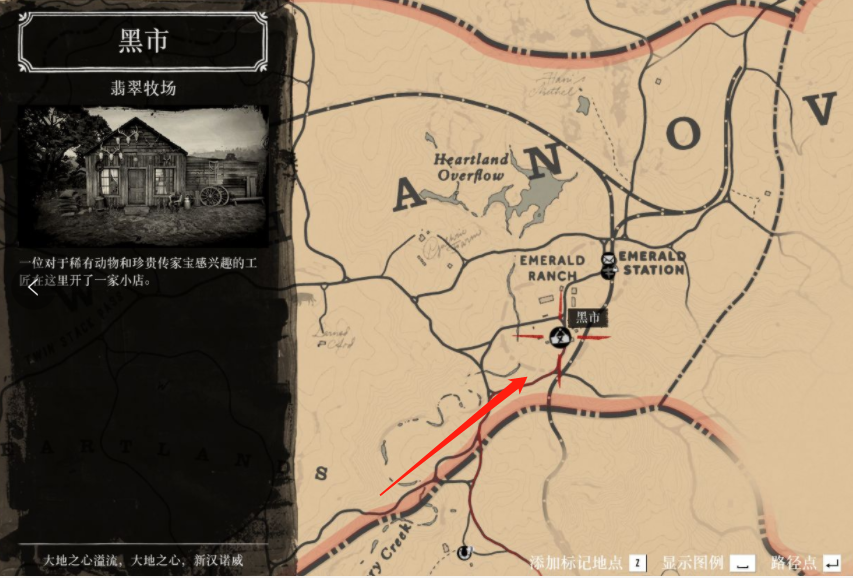 在荒野大鏢客2中貴重物品的售賣是來錢最快的方法之一;但是貴重物品和被盜物品不能在一般商店和其他「合法」供應商處出售。它們只能在柵欄上出售而且必須解鎖 - 默認情況下它們不可用。玩家可以前往黑市進行售賣,黑市的位置就在翡翠農場,需要提前解鎖才行.