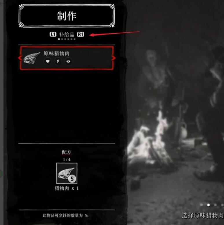 首頁 荒野大鏢客2 問答 荒野大鏢客2在營地怎麼烹飪? 2022-11-26 1、首先打開製作菜單後,可以看到可以製作的補給品。選擇它。2、選擇能製作的補給品後,右下角就會有「烹飪」的互動提示。3、使用「烹飪」操作並製作好後,右下角就會出現「食用」和「收起」的互動信息。