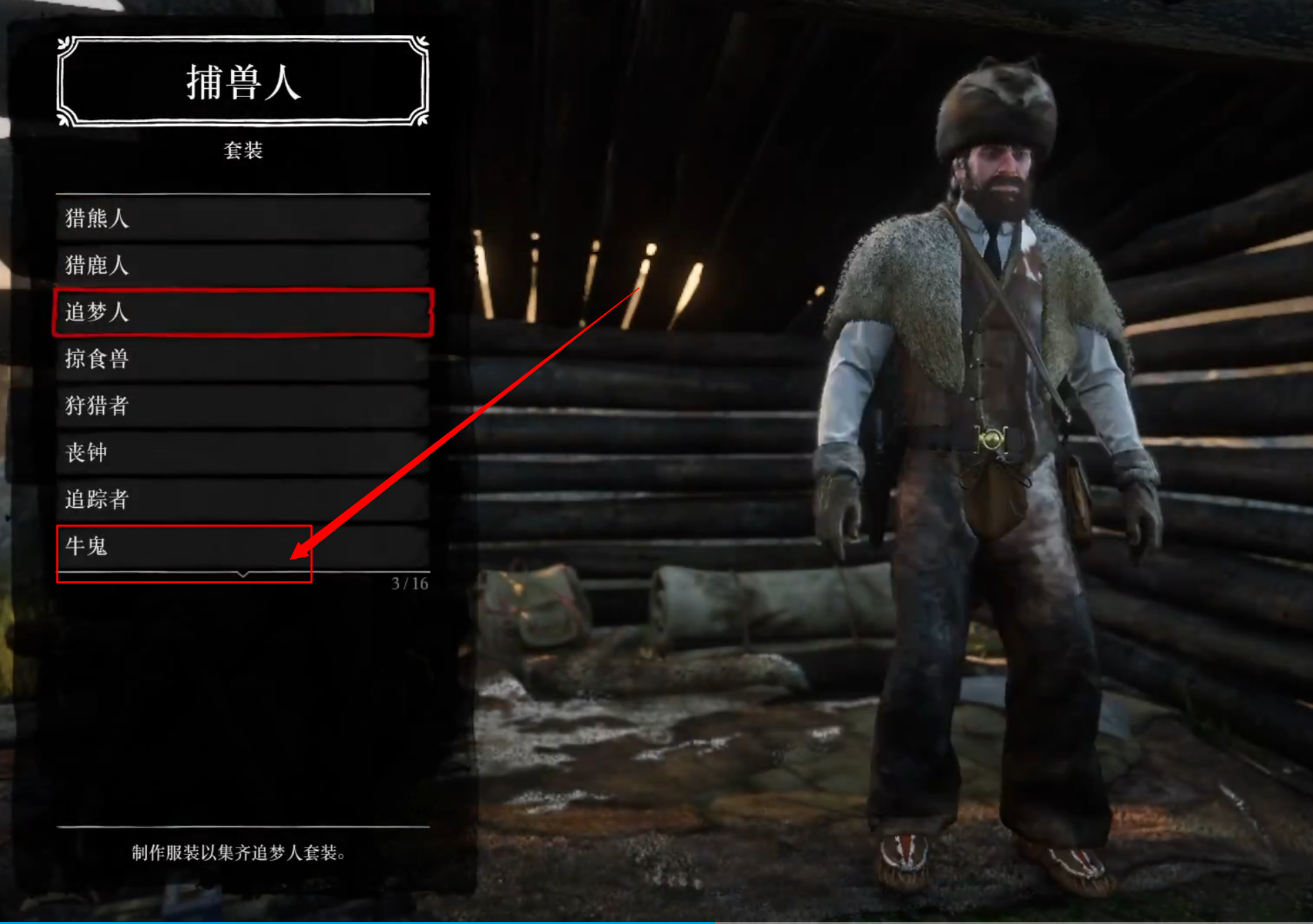 首頁 荒野大鏢客2 問答 荒野大鏢客2傳說白野牛皮怎麼做衣服? 2022-11-26 1、找到捕獸人,點擊套裝。2、傳說白色野牛皮可以用來製作牛鬼套裝,點擊牛鬼。3、傳說白色野牛皮,可以用來製作傳說白色野牛帽和傳說白色野牛皮外套4、點擊右下角製作即可。