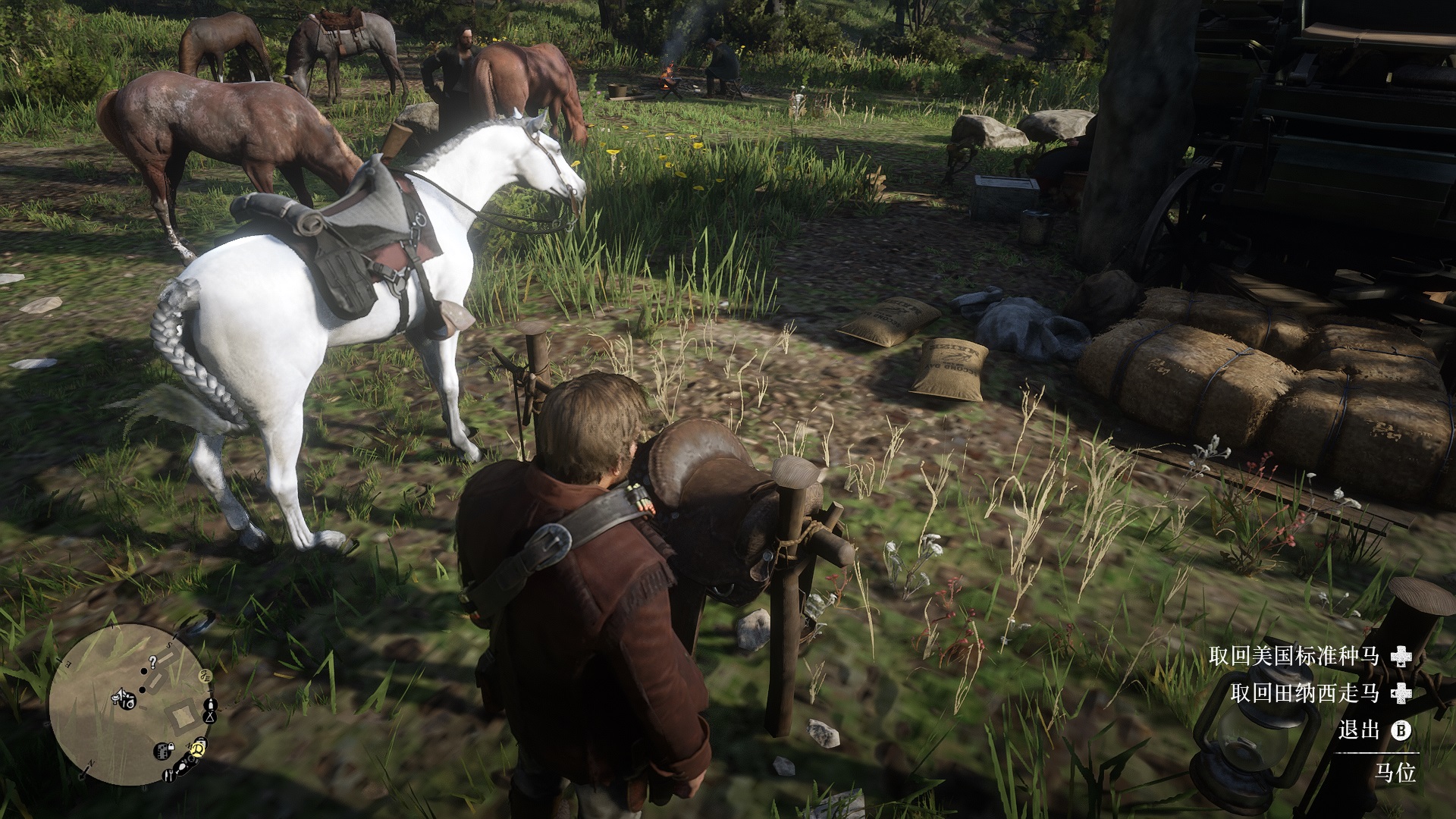 首頁 荒野大鏢客2 問答 荒野大鏢客2營地馬位有什麼用? 2022-11-27 1.在游戲《荒野大鏢客2》中,玩家解鎖了馬位後;2.玩家就可以在馬位前按下R鍵,進入馬位菜單;3.然後玩家就能在馬位處取回放置在馬廄中的馬匹了。
