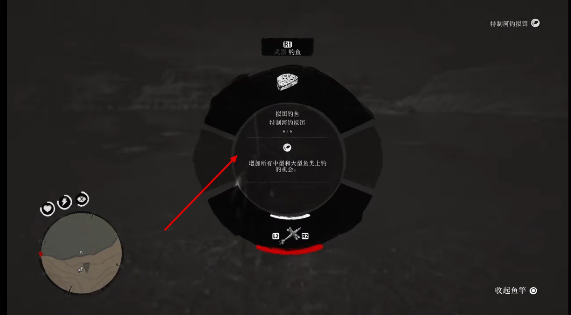 首頁 荒野大鏢客2 問答 荒野大鏢客2大口黑鱸用什麼魚餌? 2022-11-27 1.釣大口黑鱸需要使用特製河釣擬餌。2.大口黑鱸釣的位置在聖路易斯河左上角,在魚尾巴對出的河邊釣,地圖上有一小塊凸出,不用去島上。