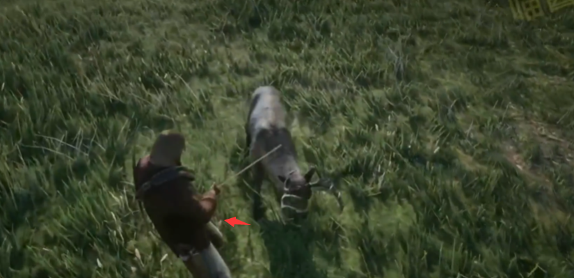 3、然後我們騎馬慢慢靠近鹿,丟出繩索套住它。