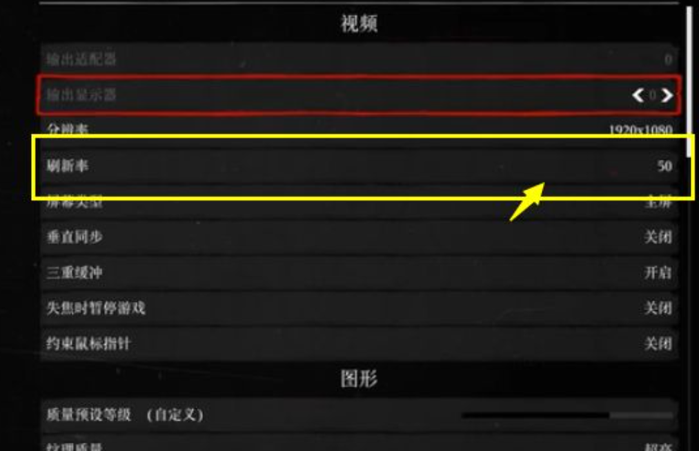1,玩家在「視頻」選項中,將「刷新率」調整為50,這就能保證中低端配置電腦穩定運行,不至於卡頓嚴重,如果電腦配置較高,可以適當的手動調整