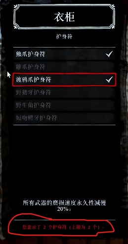 首頁 荒野大鏢客2 問答 荒野大鏢客2護符最多帶幾個? 2022-11-28 1、如圖,在游戲荒野大鏢客2中,玩家們身上最多可以攜帶2個護身符。2、護身符共有6種,分別為渡鴉爪護身符、鷹爪護符、野牛角護符、野豬牙護符、熊爪護身符和短吻鱷護身符。玩家們可以通過完成支線任務、購買特典、探索等方式獲得。