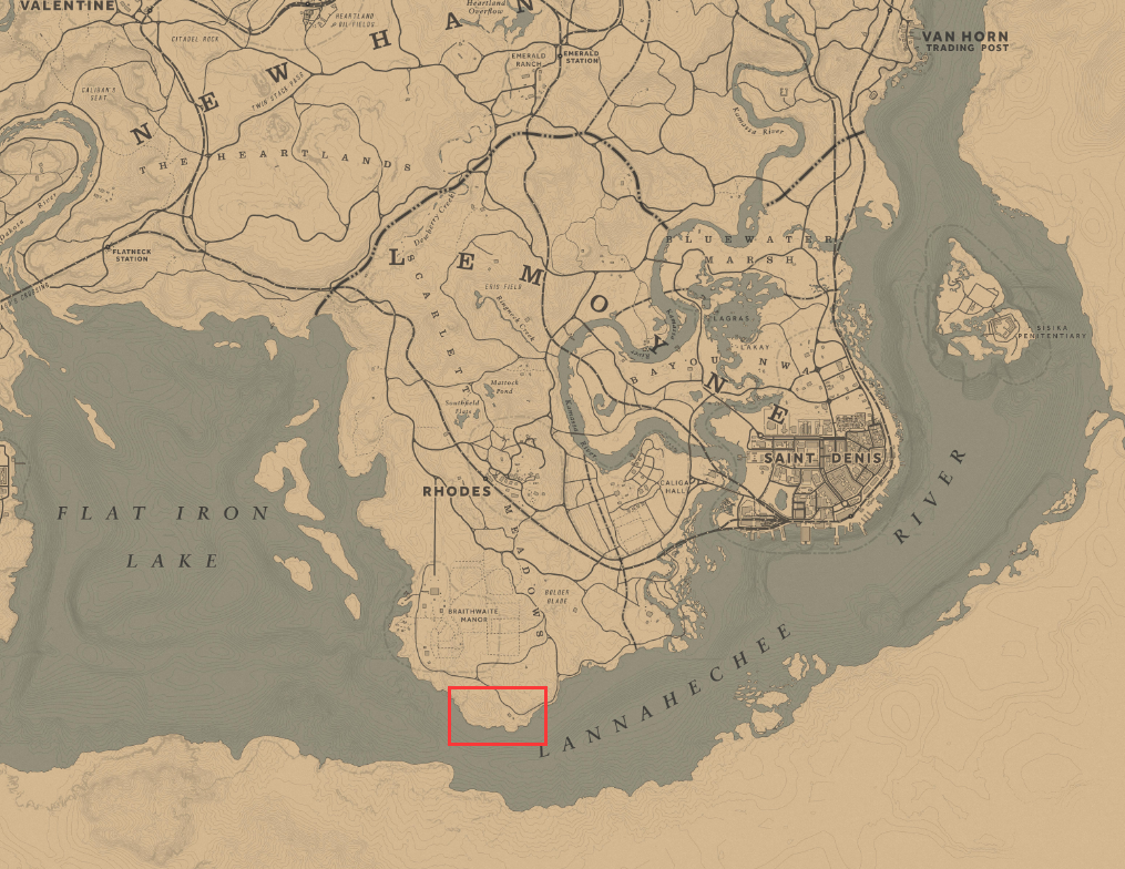 首頁 荒野大鏢客2 問答 荒野大鏢客2鯰魚傑克森農庄在哪裡? 2022-11-28 傑克森農莊的位置在地圖的最南邊,羅滋南邊境下面的河邊,具體位置在布雷斯韋特莊園最南邊。就是下面地圖中紅框圈起來的地方。
