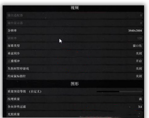 1、首先打開荒野大鏢客2的設置界面,如下圖所示,各項異性過濾不要太高,設置為X4足夠了,太高幀率就會降低。