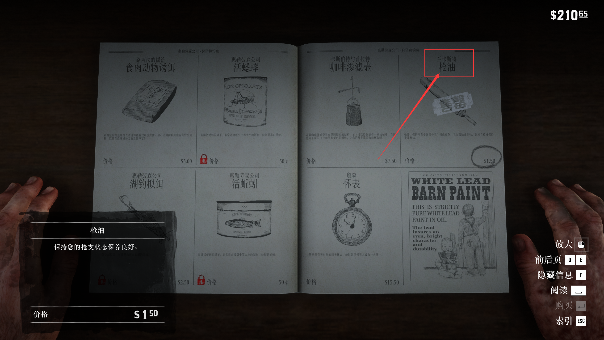 首頁 荒野大鏢客2 問答 荒野大鏢客2槍油哪裡買? 2022-11-30 荒野大鏢客2是一款發售於2018年10月26日的游戲,玩家在游戲內需要經常性的保養槍械,而用來保養槍械的槍油則可以在各處的雜貨鋪中購買。