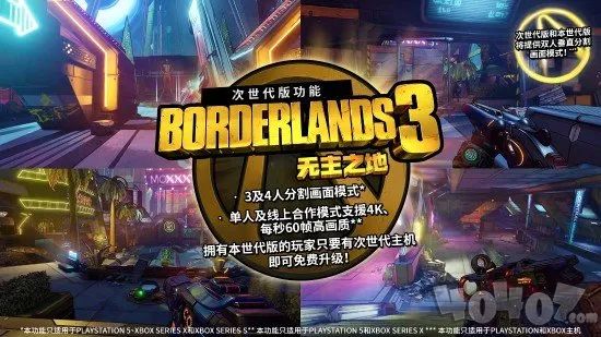 本世代平台的《無主之地3》玩家可以輕鬆地將游戲轉換為同主機家族的次世代版本。若你是擁有Xbox One版《無主之地3》的玩家,你將能遊玩Xbox Series X/S版本;若你是擁有PlayStation 4版《無主之地3》的玩家,你將能遊玩PlayStation 5版本。你的追加內容和游戲存檔也會轉移到同主機家族的次世代主機上,讓你能從上次離開的地方接續玩下去。(請注意,若你擁有實體光碟版《無主之地3》,則必須使用附有光碟機的Xbox Series X或標準款式PlayStation 5主機才能享受所有這些功能。)