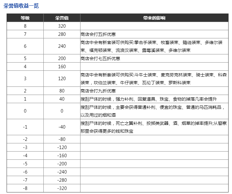 游戲中的榮譽值就是屏幕下方的紅白進度條。位置偏左是低,偏右是高,按alt可以查看通緝、懸賞。榮譽值高的話,去商店買東西會打折,路人會稱贊你。榮譽值低,買報紙的孩子會嘲諷你:看看你乾的一些好事,也沒有其他的影響!