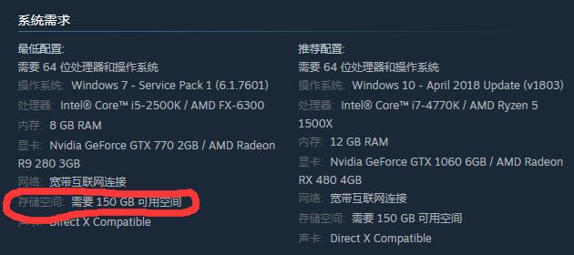首頁 荒野大鏢客2 問答 荒野大鏢客2多大? 2022-12-02 荒野大鏢客2的大小為150GB。1,首先我們進入Steam搜索這款遊戲,點擊進入遊戲界面。2,然後往下滑動找到配置列表,就可以發現這款遊戲的大小為150GB。