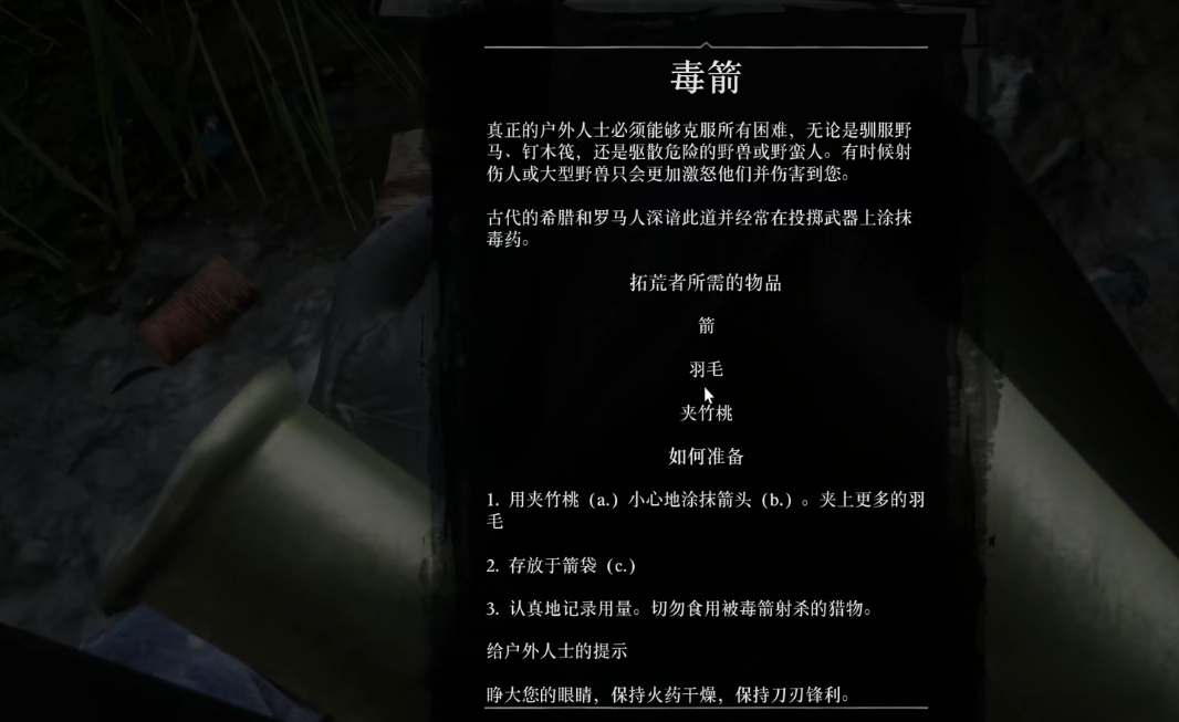 1、製作毒箭的材料需要箭、夾竹桃以及羽毛,箭一般玩家身上都有,沒有的話隨便找個槍械店買就行了。