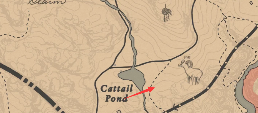 1、荒野大鏢客2公羊在地圖上的具體位置如箭頭所示。