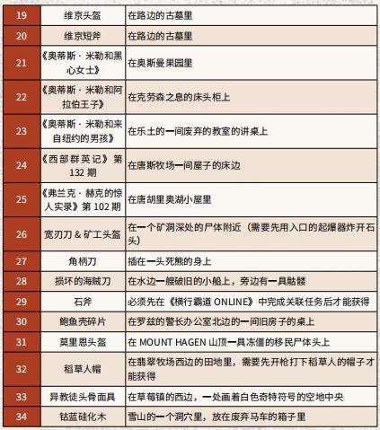 首頁 荒野大鏢客2 問答 荒野大鏢客2監獄島有什麼重要物品嗎? 2022-12-03 大地圖上存在著 34 件特殊收集品,這些收集品多半是近戰武器和頭部飾品,不過其中也有兩張藏寶圖碎片,並可通過拼好的藏寶圖來獲得一把好槍。如果想達成 100% 完成度所要求的武器數量,就不能錯過特殊收集品中的那些武器。