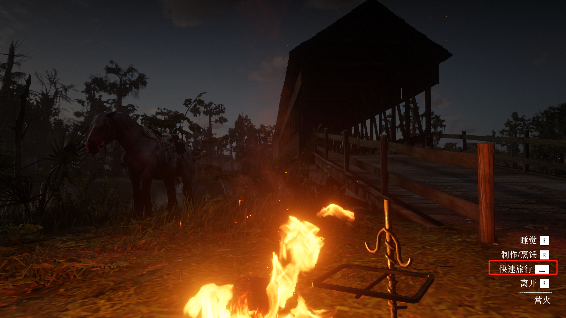 首頁 荒野大鏢客2 問答 荒野大鏢客2如何快速移動回營地? 2022-12-04 1.首先,玩家需要在野外按住Tab鍵切出營火進行休息。2.然後單擊空格來快速旅行。3.接著選擇馬展望台。4.最後就可以回到營地了。