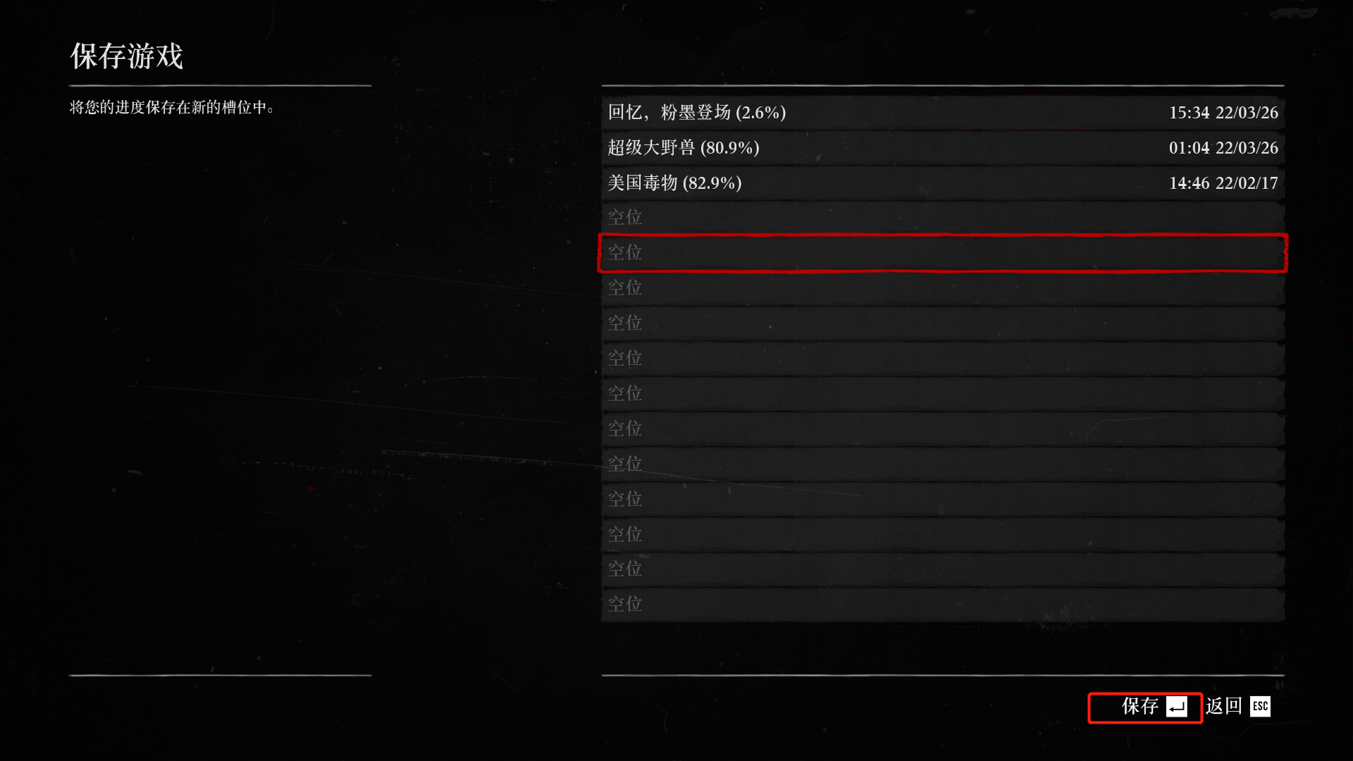 首頁 荒野大鏢客2 問答 荒野大鏢客2怎麼保存線下進度? 2022-12-04 1.在熱門單機游戲荒野大鏢客2中,玩家想要保存線下進度只需要按esc打開設置,選擇故事。2.然後選擇保存游戲。3.最後選擇位置進行保存即可。