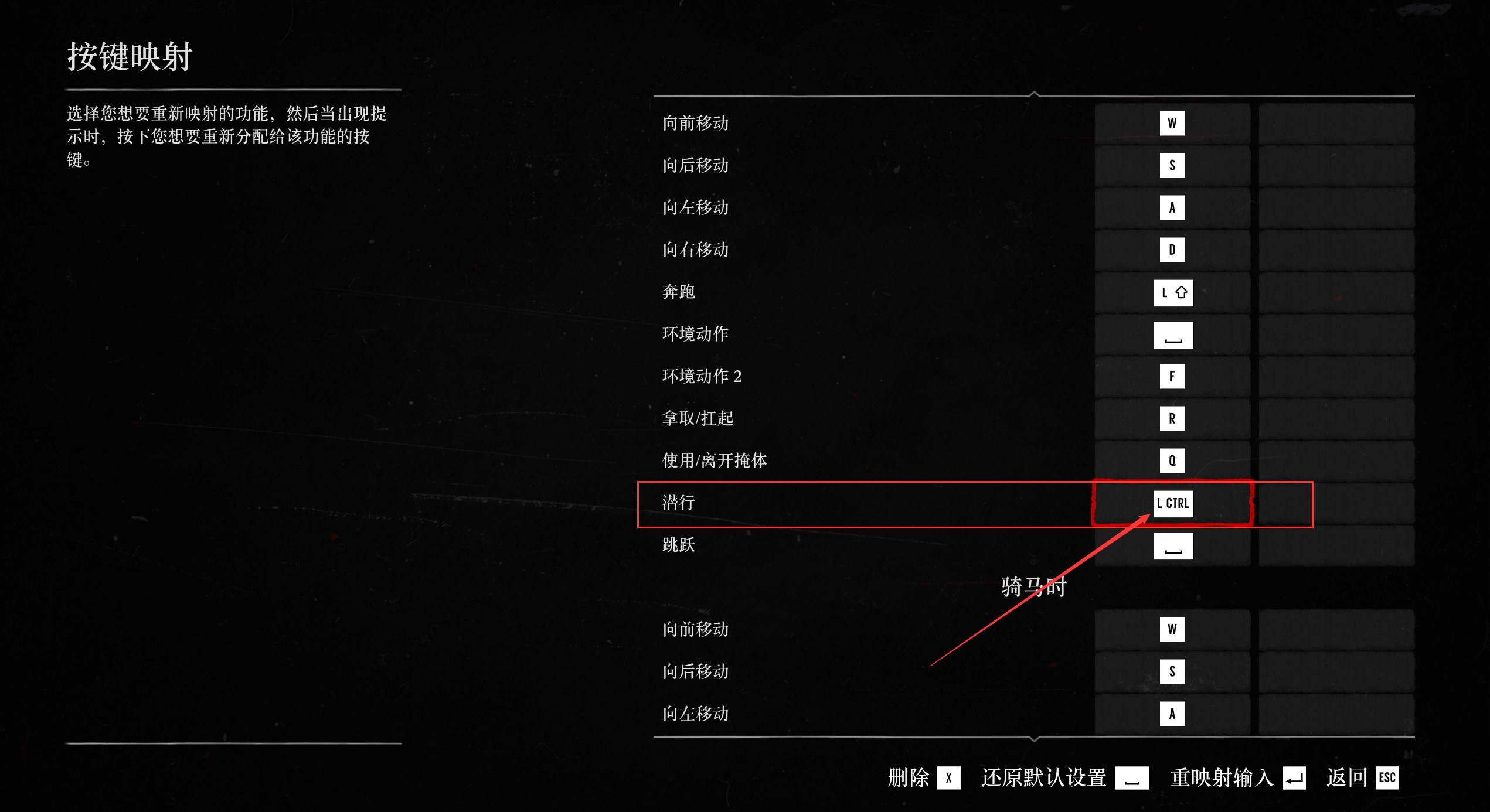 荒野大鏢客2是一款發售於2018年10月25日的游戲,在游戲內玩家需要潛行或者是蹲下時,只需按下鍵盤上的左Ctrl鍵即可。
