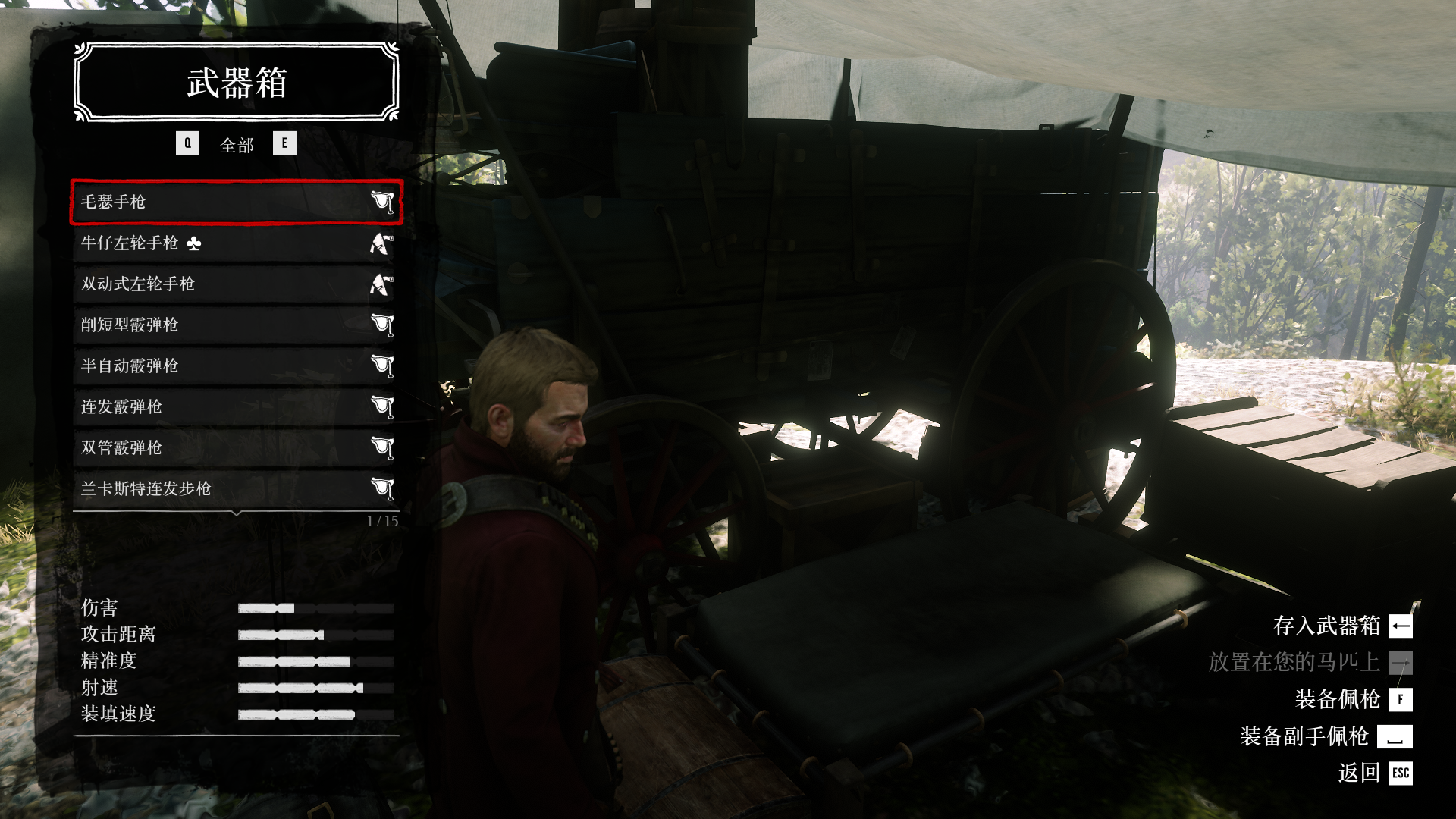 1.荒野大鏢客2想查看購買的子彈可以到達自己的營地,然後按r查看武器庫。