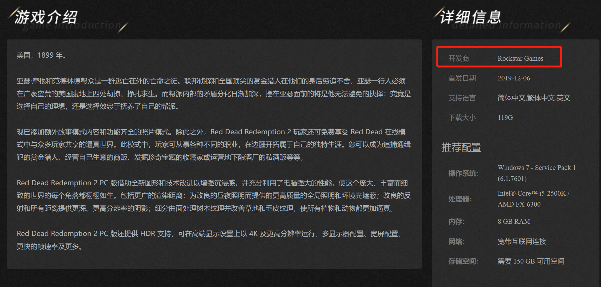 首頁 荒野大鏢客2 問答 荒野大鏢客2開發商是誰? 2022-12-07 該游戲的開發商是【Rockstar】公司,玩家可以在客戶端搜索該游戲,然後點擊游戲詳情,就能夠看到該游戲的開發商和首發日期,支持語言和配置等,如圖所示