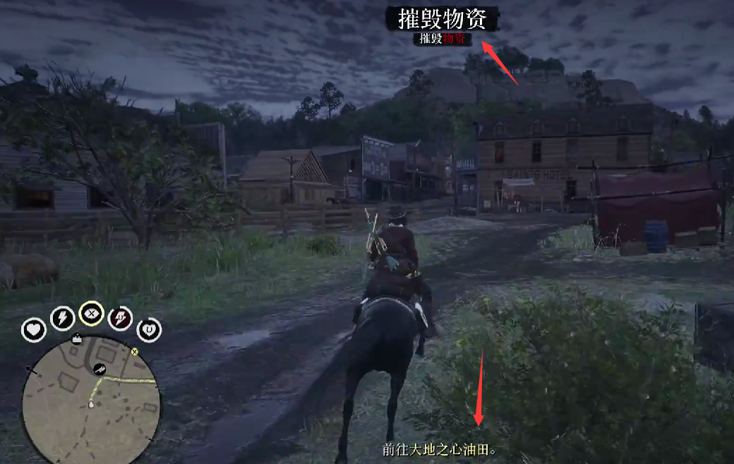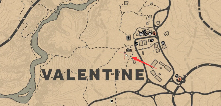 1、荒野大鏢客2中做線上男孩的任務流程:首先來到地圖箭頭所指的位置找到男孩。
