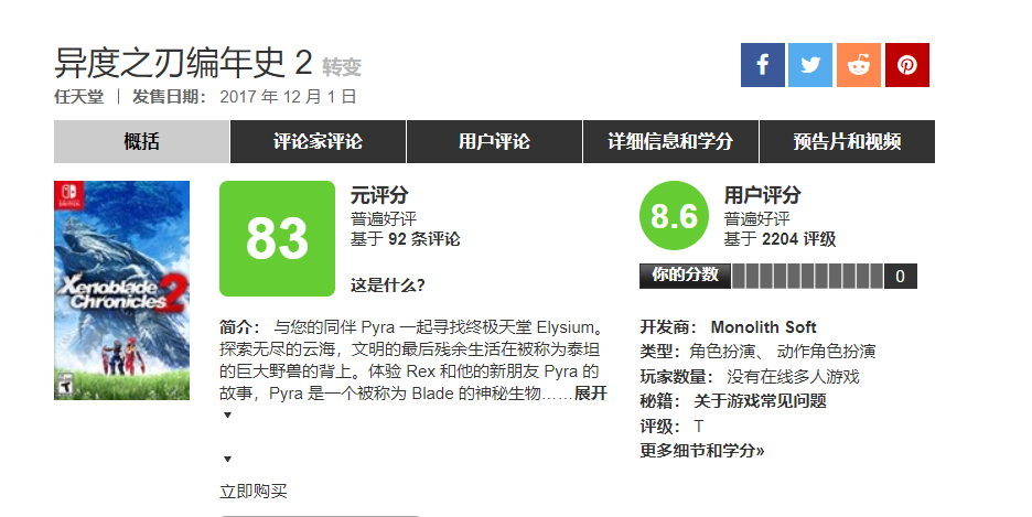首頁 異度之刃2 問答 異度之刃2mc評分怎麼樣? 2022-12-09 《異度之刃2》在Metacritic網站的均分為83分。異度之刃2是Monolith Soft製作、任天堂游戲公司發行的開放世界角色扮演游戲,2017年12月1日在Nintendo Switch主機發售。
