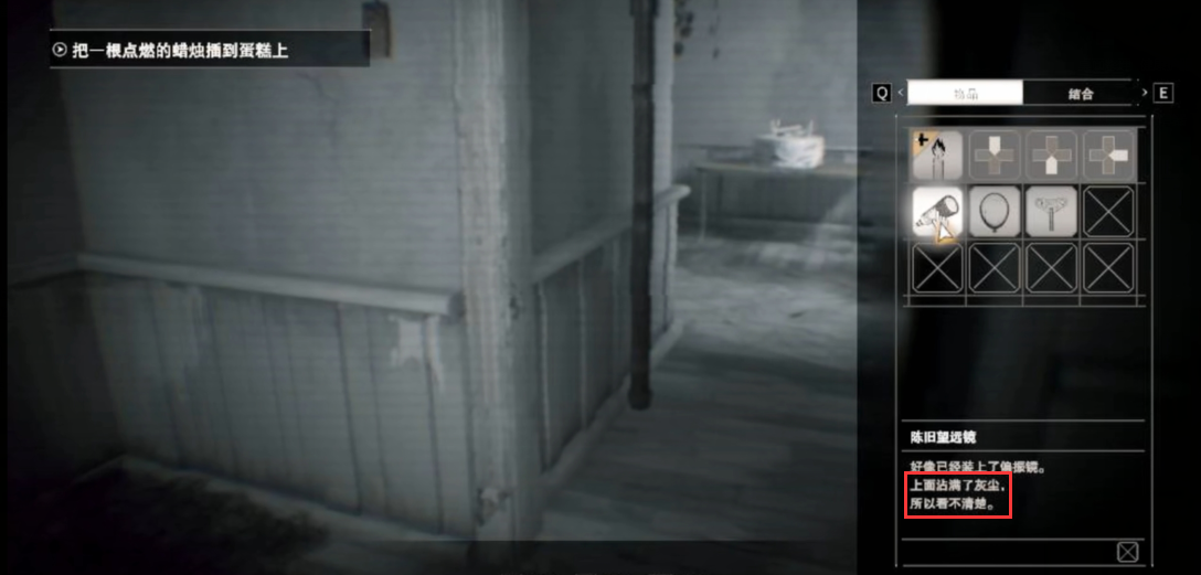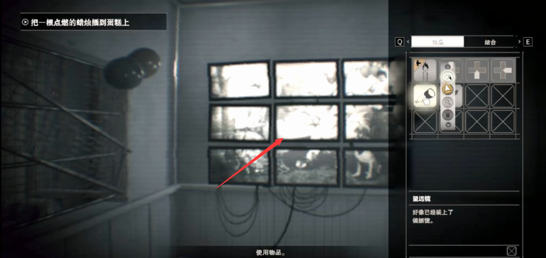 2、前往蛋糕的位置,在經過門的時候花灑會打開,在這里使用望遠鏡,望遠鏡會被沖洗干凈。