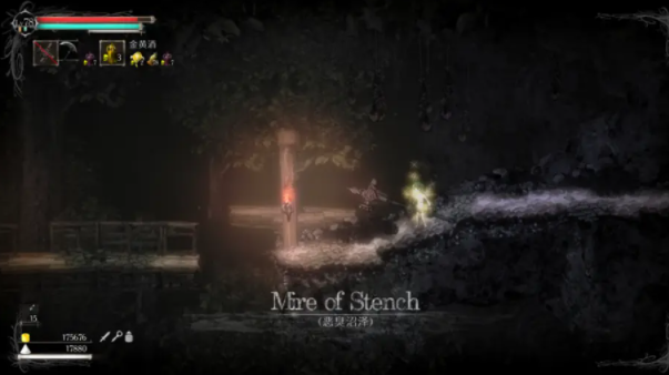 在鹽和避難所,玩家可以傳送到遺忘供堂右邊跳下去,在從其左邊出去直走幾步到台階位置,點上火把就可以看到