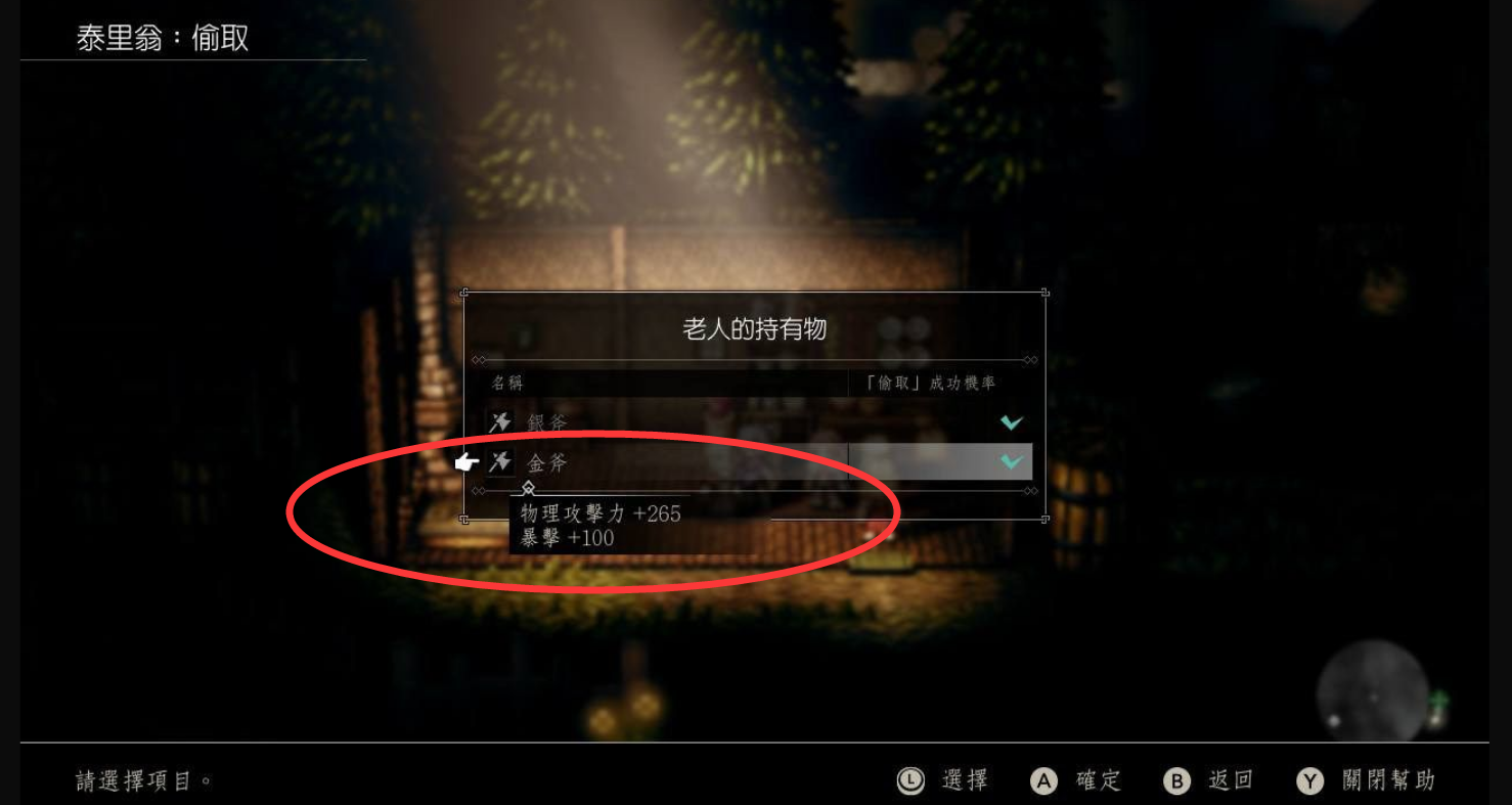首頁 八方旅人 問答 八方旅人金斧頭怎麼偷? 2022-12-14 玩家需要將守門的孫女先擊敗,然後才能進到房子里偷取老人的金斧頭;獲取裝備的前提是要有獵人跟盜賊的技能,然後再去偷取裝備,銀的幾率是8%,金的幾率是3%。
